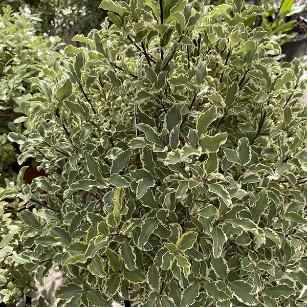 Oriundo de Nueva Zelanda, el Pittosporum tenuifolium se ha ganado un lugar en los jardines por su luminosa masa de pequeñas hojas perennes, coriáceas y de suave color verde, generalmente variegadas. Es un arbusto erecto de rápido crecimiento, que puede alcanzar entre 1 y 2,5 metros, aunque existen variedades compactas, mucho más pequeñas. No resiste el frío extremo (USDA 8-10), pero puede soportar hasta -15 grados si está a resguardo del viento.