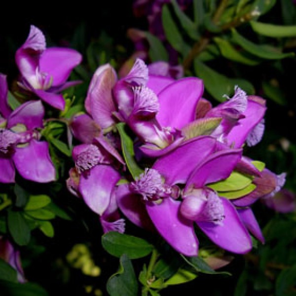 Este florífero arbusto de origen sudafricano produce racimos de flores de color malva desde la primavera hasta la llegada de los primeros días del invierno, e incluso durante todo el año en las regiones más propicias. Ya que que sufre cuando las temperaturas bajan de -5° (USDA 9), el área mediterránea y las zonas menos frías del litoral atlántico son el hábitat ideal de la Polygala myrtifolia. Tolera el aire del mar y soporta el viento, por lo que resulta perfecta para jardines costeros. Mantiene el follaje todo el año. Crece rápidamente.