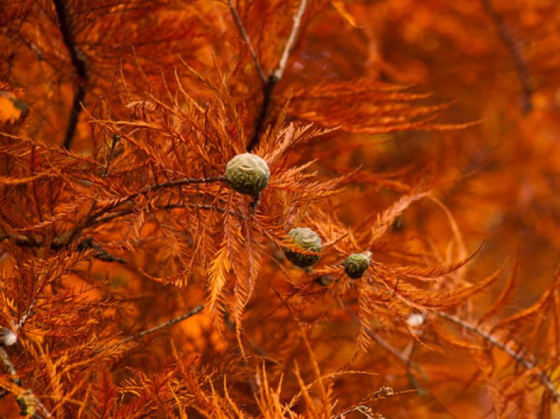 El color almagre del follaje del ciprés de los pantanos o ciprés calvo (Taxodium distichum) en octubre. Copyright: Kew on Flickr