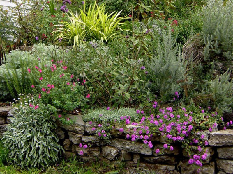 Las mejores rocas son las calcáreas, sobre todo las calizas. Los granitos también quedan muy vistosos, y se suelen cubrir de musgo, lo que aporta un toque natural. Es preferible que las piedras tengan forma irregular y que sus dimensiones no sean inferiores a 60x30x30 centímetros. Conviene colocar primero las más grandes, y separarlas lo suficiente para que las plantas se puedan desarrollar holgadamente. Se debe enterrar en la tierra al menos la mitad de su volumen y poner la parte superior algo inclinada hacia la pendiente, para que el agua vierta a la tierra. Entre un nivel de piedras y el siguiente, la tierra debe quedar horizontal.